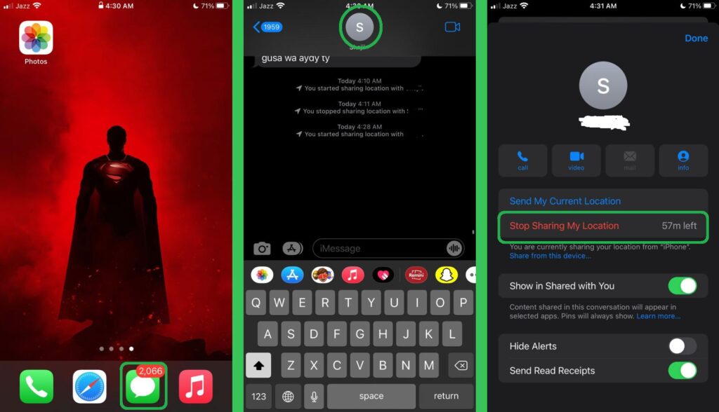 This is something that barely gets covered in other guides. If you shared your location directly inside a Messages conversation, that share is separate from your Find My settings. You can stop it from inside the chat without touching Find My at all.