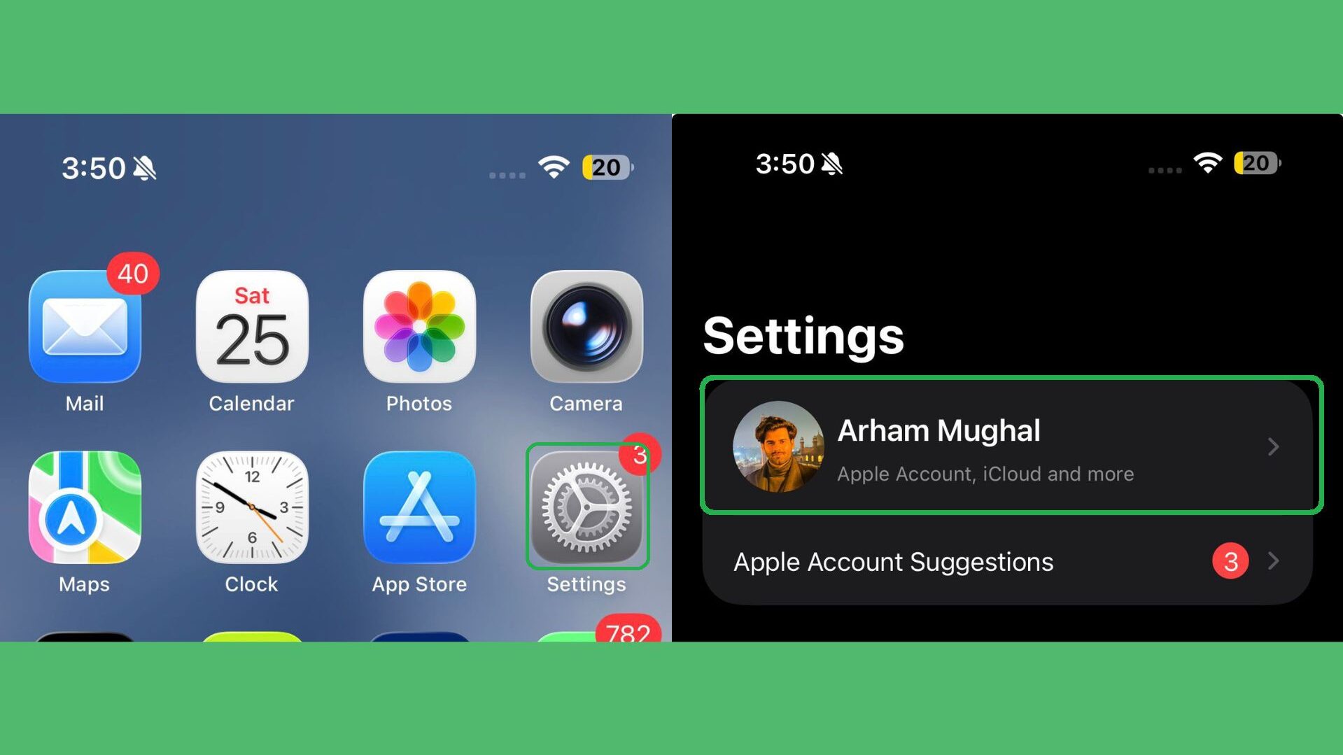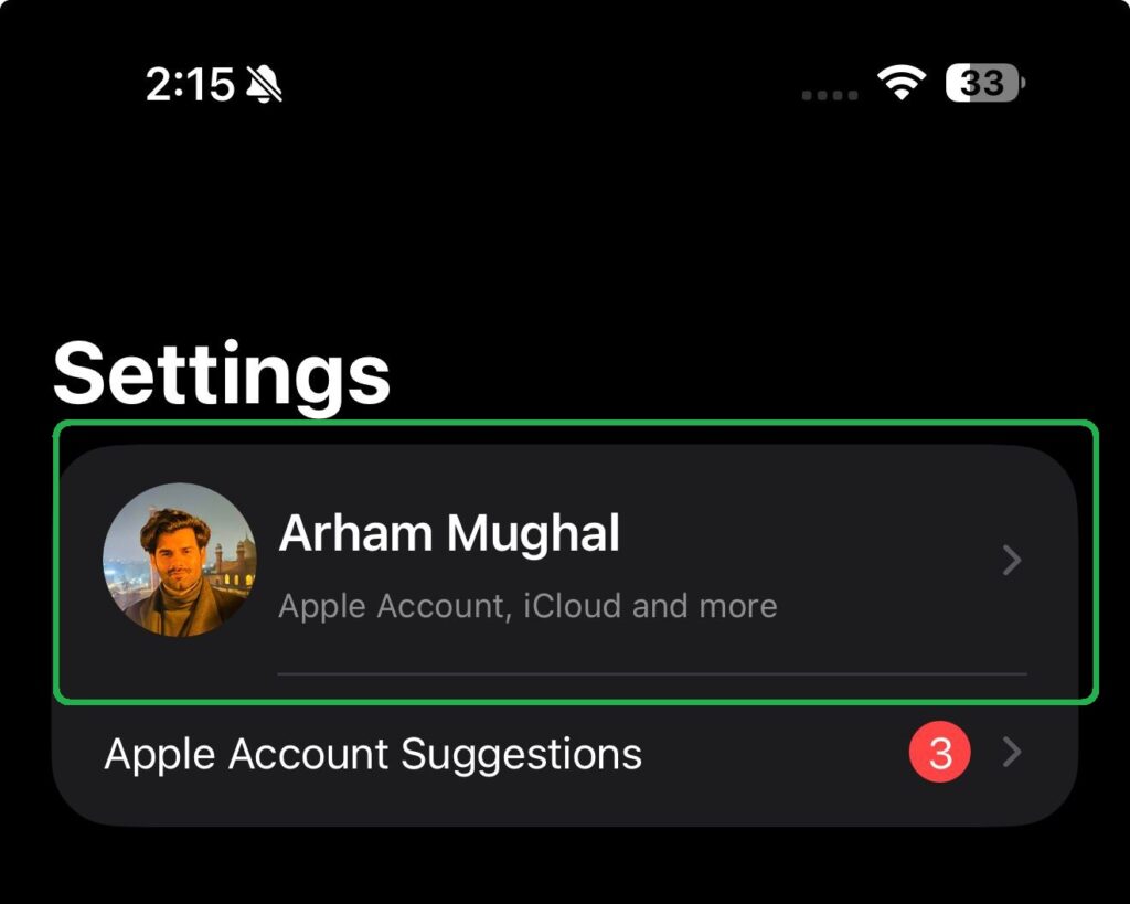 Step 1: On your main iPhone, open Settings and tap your name at the top.