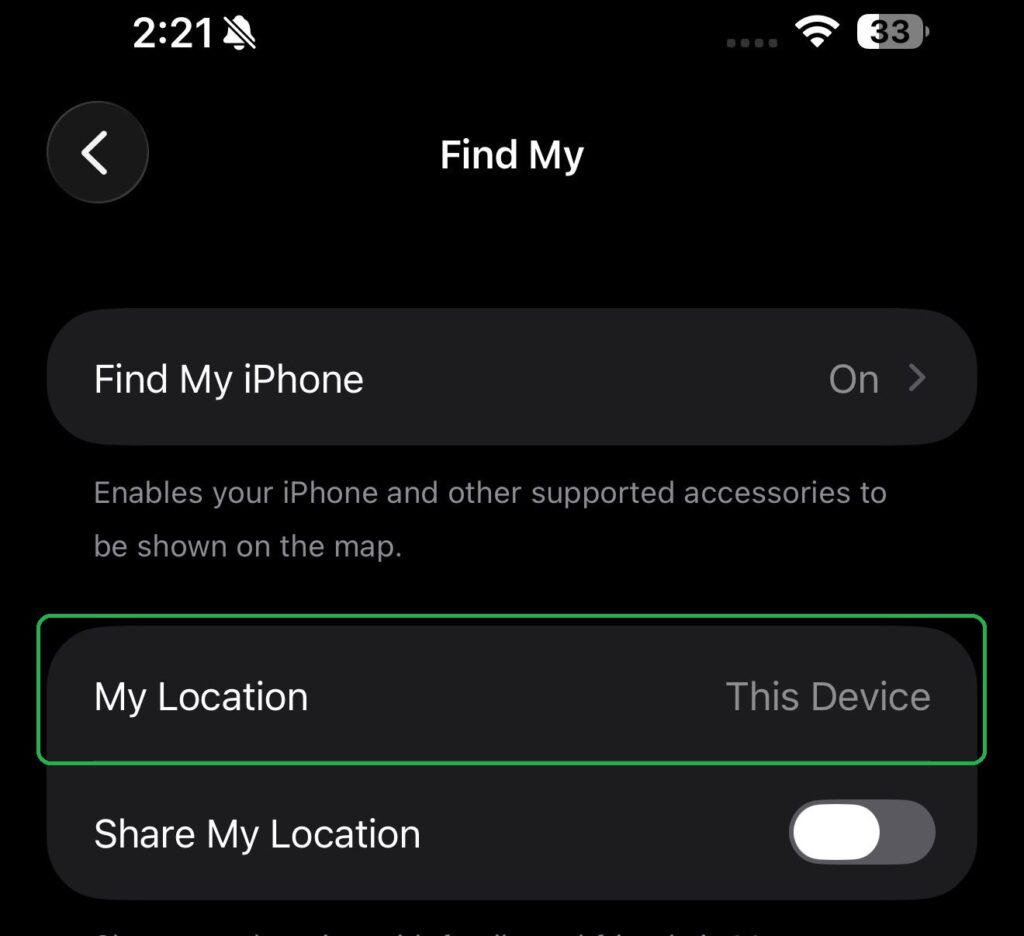 Step 3: You will see My Location showing “This Device.” That is what your contacts currently track.