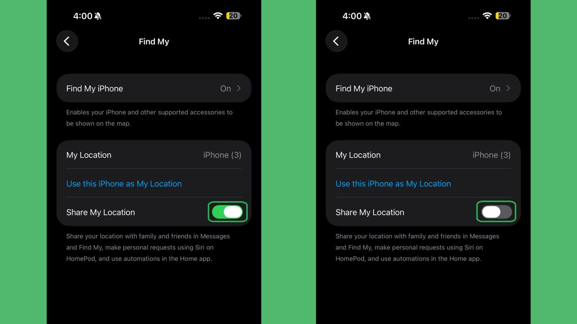 One thing worth knowing: when you turn Share My Location back on later, your contacts receive a notification that you resumed sharing. Turning it off is silent, but turning it back on is not.